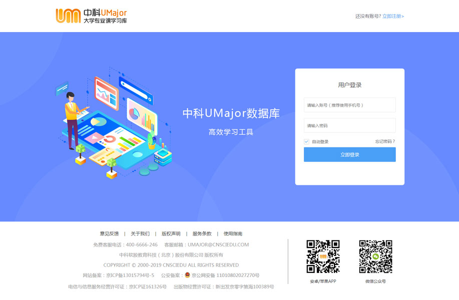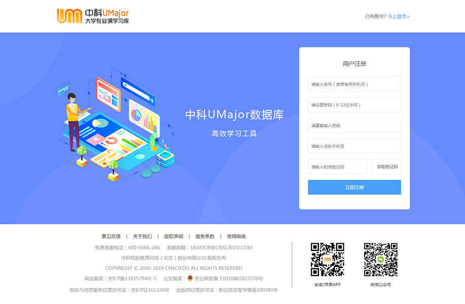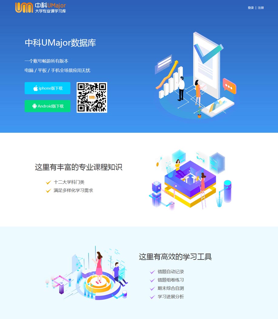 如果您不希望下载APP,则您可以关注本数据库的微信公众号(微信搜索:中科UMajor大学专业课),通过微信公众号直接访问本数据库的微信版。