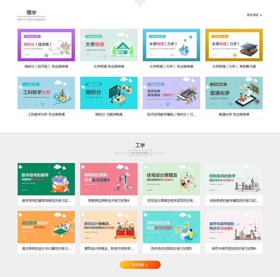 (2)在试卷中心学科版块(例如理学、工学、经济学、管理学等)右侧点击“更多”,进入资源列表页,选择您感兴趣的专业课试卷。